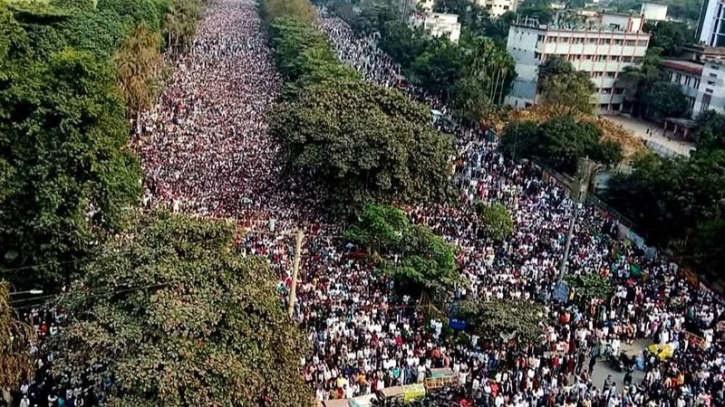 The area from Manik Mia Avenue in the capital to Dhaka University's (DU) TSC to see the tomb of Inqilab Mancha spokesperson Sharif Osman Hadi has turned into a sea of people. Hadi's body was taken to Dhaka University after the funeral prayer at the South Plaza of the Parliament Building at 2:30 pm on Saturday (December 20).