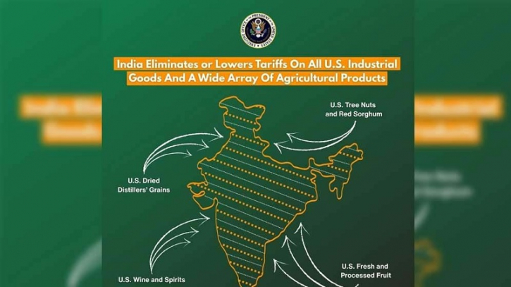 The US Trade Representative's office posted the map along with the announcement to announce that tariffs on several US products are being reduced in India. It says that many products, starting with almonds, are going to find new markets in India.