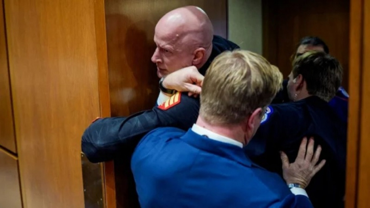 After the chants, three police officers and Montana Republican Senator Tim Sheehy got into a scuffle to get McGinnis out of the room. McGinnis grabbed the door and shouted that no one wants to fight for Israel.